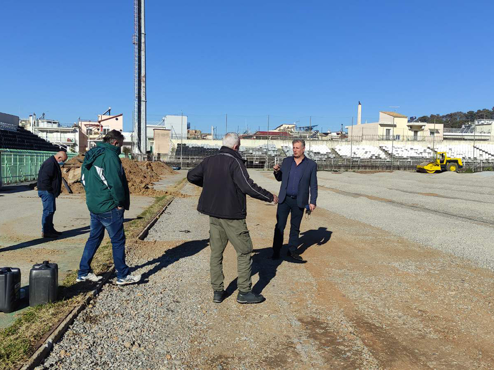 Αυτοψία στις εργασίες για τη βελτίωση και συντήρηση του γηπέδου του Μεσσηνιακού, στην Καλαμάτα, έκανε ο αντιπεριφερειάρχης Μεσσηνίας Βασίλης Καπέλιος, σήμερα Παρασκευή 11 Φεβρουαρίου.
