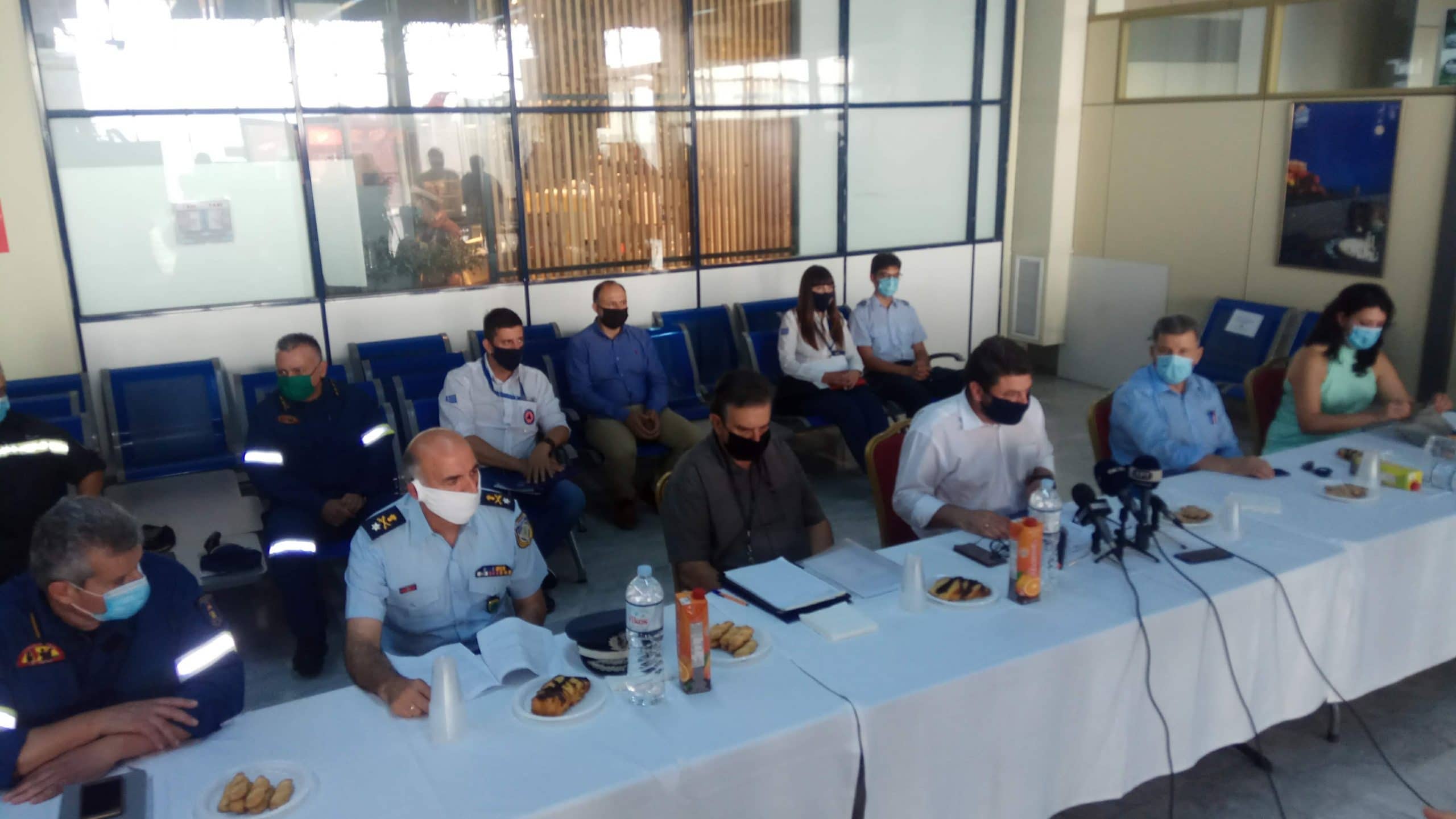 Ο υφυπουργός, με την άφιξή του στο αεροδρόμιο, συμμετείχε σε τεχνική σύσκεψη με τη συμμετοχή -μεταξύ άλλων- του αερολιμενάρχη Δημήτρη Μανδηλάρη, των ανιπεριφερειαρχών Μεσσηνίας Στάθη Αναστασόπουλου κι Τουρισμού Αννας Καλογεροπούλου, του Γενικού Αστυνομικού Διευθυντή της Περιφέρειας Πελοποννήσου ταξίαρχου Παναγιώτη Πούπουζα και του περιφερειακού διοικητή πυροσβεστικών υπηρεσιών Πελοποννήσου αρχιπύραρχου Θανάση Κολυβήρα.