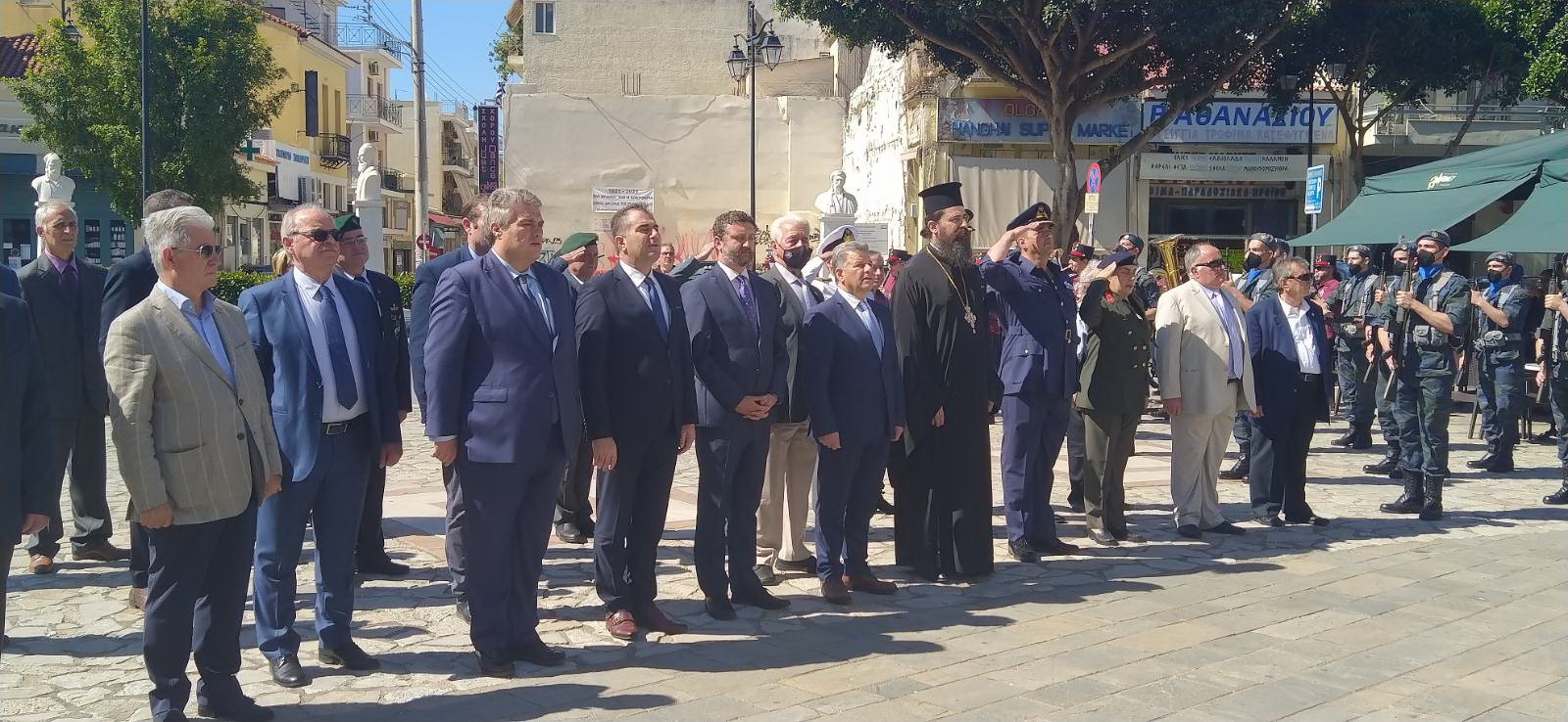 Στο πλαίσιο αυτό, τελέστηκε δοξολογία στις 10 το πρωί στον μητροπολιτικό ναό της Υπαπαντής του Χριστού και ακολούθησε ομιλία από τον Ιωάννη Σταματόπουλο, συνταξιούχο της ΕΛΑΣ, κατάθεση στεφανιών στο ηρώο της πλατείας 23ης Μαρτίου, τήρηση ενός λεπτού σιγής και ανάκρουση του εθνικού ύμνου.