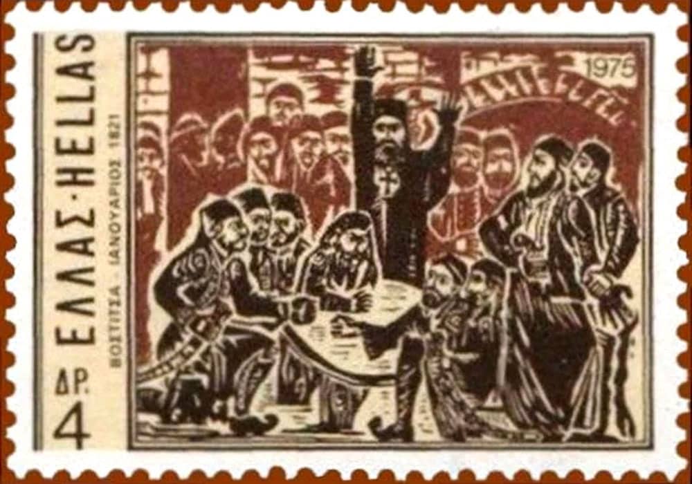 Γραμματόσημο αφιερωμένο στη Συνέλευση της Βοστίτσας, έκδοση 1975.