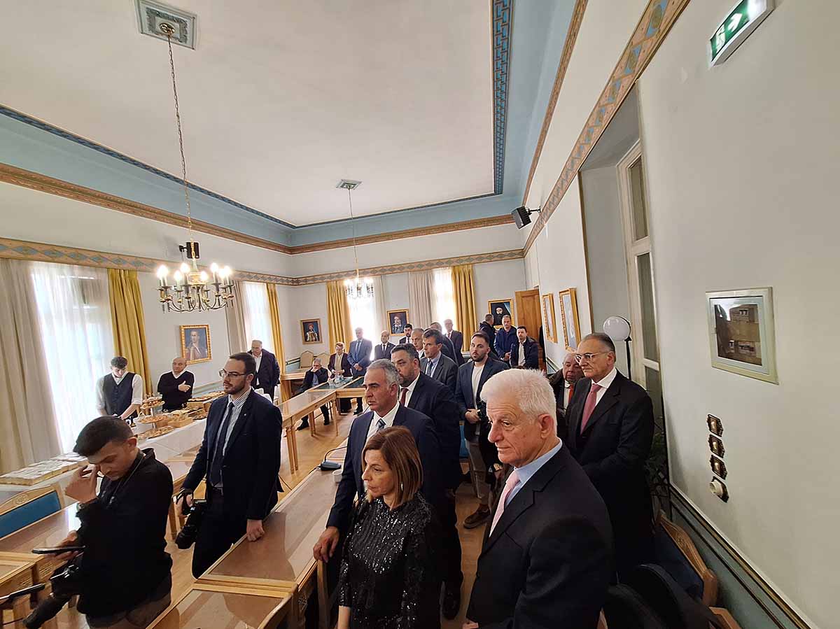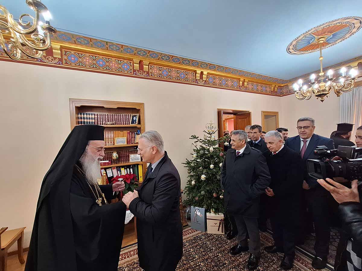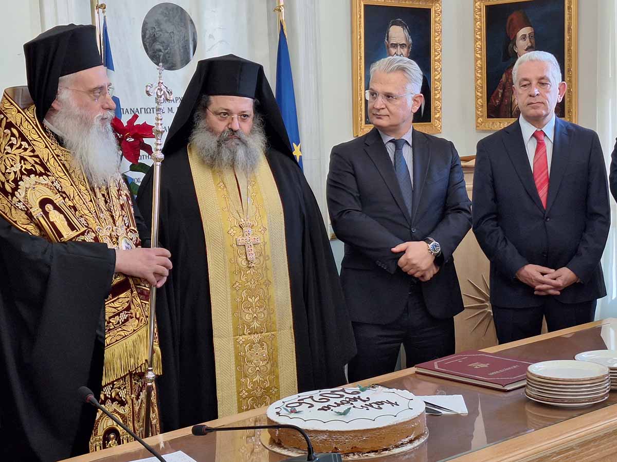 Ο Περιφερειάρχης Πελοποννήσου, Δημήτρης Πτωχός, παρέστη στην τελετή και αμέσως μετά αντάλλαξε θερμές ευχές με τον Σεβασμιώτατο στο Επισκοπείο της Ιεράς Μητροπόλεως.