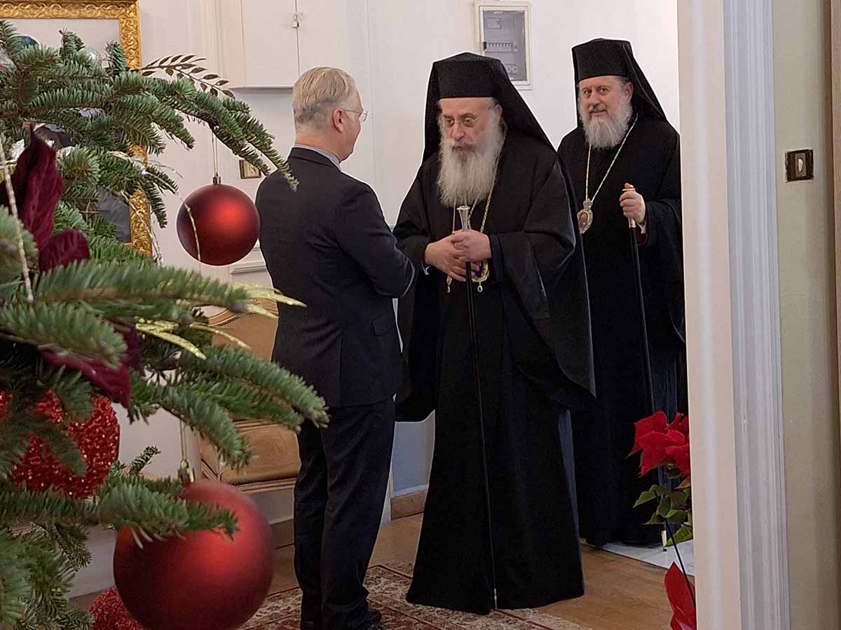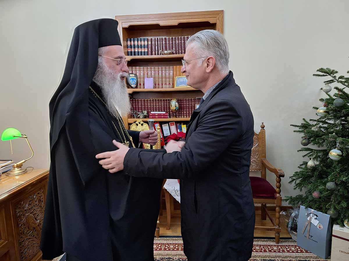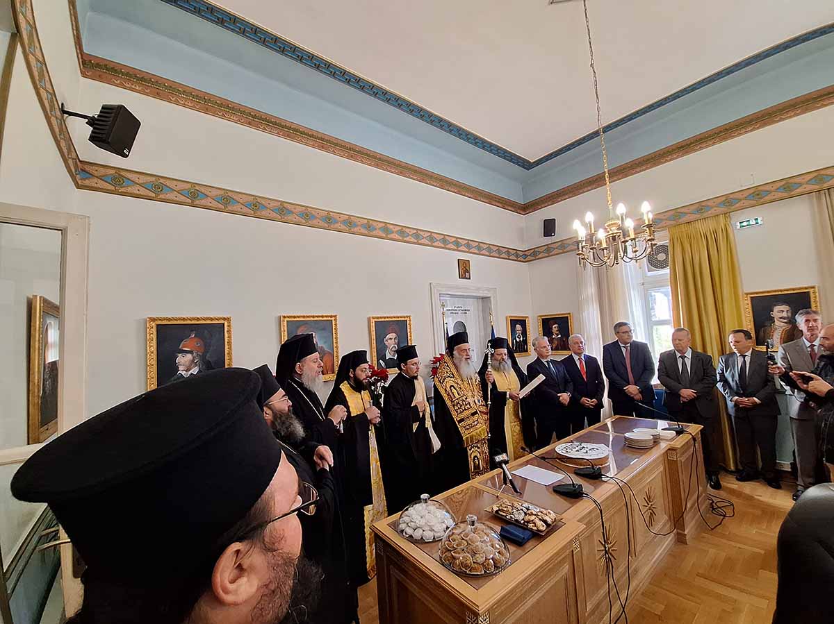Ο Περιφερειάρχης Πελοποννήσου, Δημήτρης Πτωχός, παρέστη στην τελετή και αμέσως μετά αντάλλαξε θερμές ευχές με τον Σεβασμιώτατο στο Επισκοπείο της Ιεράς Μητροπόλεως.