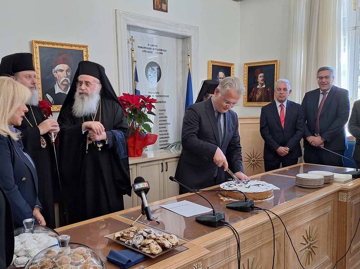 Στη συνέχεια, η έδρα της Περιφέρειας στην Τρίπολη φιλοξένησε την καθιερωμένη κοπή της πίτας, παρουσία, μεταξύ άλλων, του Αναπληρωτή Περιφερειάρχη Χρήστου Λαμπρόπουλου, του Αντιπεριφερειάρχη Π.Ε. Αρκαδίας Κώστα Μανδρώνη, του Προέδρου του Περιφερειακού Συμβουλίου Μανώλη Σκαντζού, του Εκτελεστικού Γραμματέα Γιώργου Σπίνου, του Δημάρχου Τρίπολης Κώστα Τζιούμη, υπηρεσιακών παραγόντων, εκπροσώπων θεσμών και φορέων, στελεχών και συνεργατών.