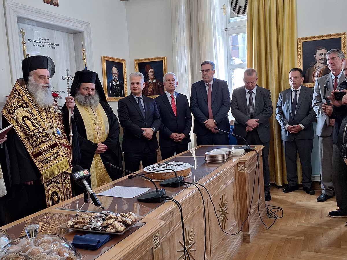 Στο πλαίσιο της εκδήλωσης, και μετά τον εμπνευσμένο λόγο του Σεβασμιωτάτου, ο Περιφερειάρχης έκανε μια συνοπτική αναδρομή των κύριων αποφάσεων, έργων και δράσεων του 2025, ενώ έθεσε τις βασικές προτεραιότητες του 2026, με επίκεντρο την ενίσχυση της συνεργασίας, την ωρίμανση έργων και τον πολλαπλασιασμό των αναπτυξιακών παρεμβάσεων.