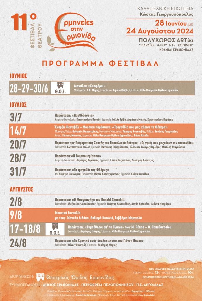 Με συνδιοργανώτρια την Περιφέρεια Πελοποννήσου, πραγματοποιείται το 11ο Φεστιβάλ Θεάτρου «Ερμηνείες στην Ερμιονίδα» από τον Θεατρικό Όμιλο Ερμιονίδας στην Αργολίδα.