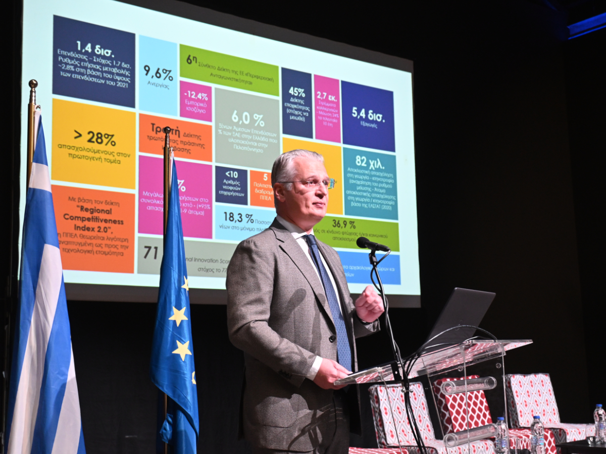 Κατά τον χαιρετισμό του, ο Περιφερειάρχης Πελοποννήσου Δημήτρης Πτωχός ανέδειξε τον καθοριστικό ρόλο του ΕΣΠΑ ως βασικού εργαλείου περιφερειακής ανάπτυξης, υπογραμμίζοντας ότι «η Πελοπόννησος είναι μια Περιφέρεια που αλλάζει, που σχεδιάζει μεθοδικά και υλοποιεί με συνέπεια, με στόχο τα αποτελέσματα να φτάνουν καθαρά και απτά στον πολίτη».