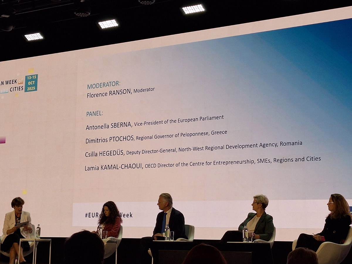 Στο πλαίσιο της Ευρωπαϊκής Εβδομάδας Περιφερειών και Πόλεων 2025, στις Βρυξέλλες, ο Περιφερειάρχης Πελοποννήσου Δημήτρης Πτωχός συμμετείχε στη Συνεδρία Υψηλού Επιπέδου με θέμα «Χτίζοντας δυναμικές και ανθεκτικές περιφέρειες» μία από τις πιο ουσιαστικές και υψηλού κύρους συζητήσεις της φετινής διοργάνωσης, δίπλα σε κορυφαίους εκπροσώπους των ευρωπαϊκών θεσμών και των περιφερειών της Ευρώπης.