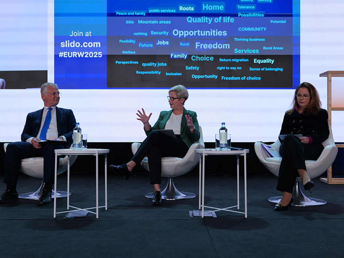 Η συζήτηση επικεντρώθηκε στο θέμα του «Δικαιώματος να Παραμένεις» (Right to Stay) – του δικαιώματος κάθε πολίτη να έχει τη δυνατότητα να ζει και να δημιουργεί στον τόπο που θεωρεί πατρίδα του. Την έναρξη έκανε ο Raffaele Fitto, Αντιπρόεδρος της Ευρωπαϊκής Επιτροπής αρμόδιος για τη Συνοχή και τις Μεταρρυθμίσεις, ο οποίος τόνισε ότι «η δύσκολη απόφαση του πολίτη να μείνει ή να φύγει εξαρτάται από παράγοντες όπως η εργασία, η υγεία, η εκπαίδευση και η συνδεσιμότητα — τομείς στους οποίους η πολιτική συνοχής μπορεί να κάνει τη διαφορά».