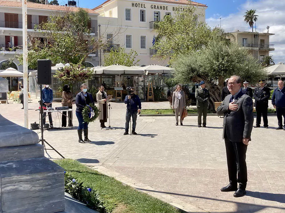 “Η συμβολή των φιλελλήνων στην επιτυχία του Αγώνα και στην δημιουργία του νέου ελληνικού κράτους ήταν αποφασιστική” δήλωσε, μεταξύ άλλων, ο περιφερειάρχης Πελοποννήσου στον χαιρετισμό του κατά την τελετή, μετά τη δέηση που απαπέμφθηκε από τον καθολικό ιερέα Ρίσαρντ Καραπούντα.
