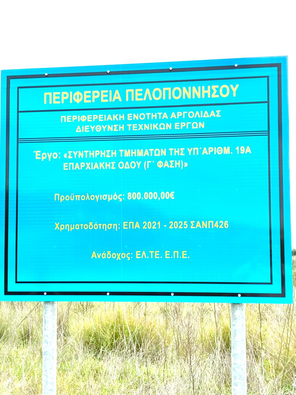 Η Περιφέρεια Πελοποννήσου ολοκλήρωσε τις εργασίες αποκατάστασης και διαγράμμισης στο οδικό τμήμα της υπ’ αριθμ. 19Α Επαρχιακής Οδού – Γ’ Φάση, γνωστό ως «Δρόμος των Αρχαιοτήτων», στην Περιφερειακή Ενότητα Αργολίδας, με συνολικό προϋπολογισμό 800.000 ευρώ.