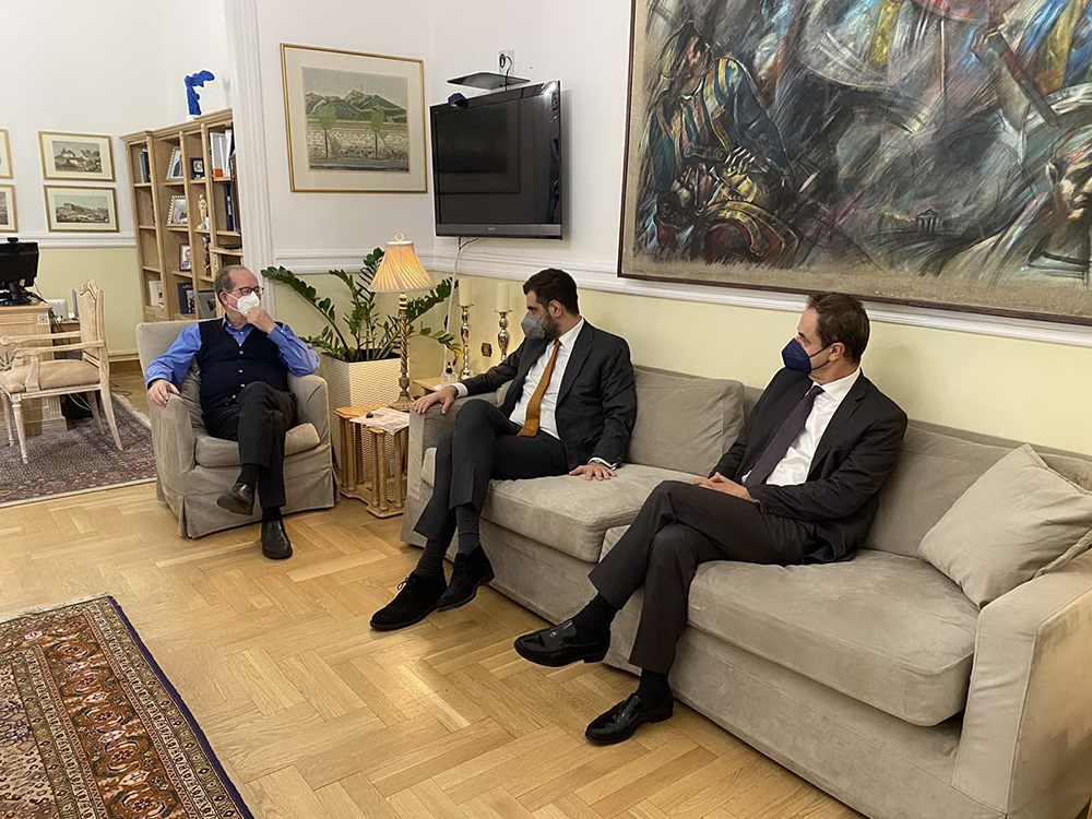 Ο περιφερειάρχης Πελοποννήσου Παναγιώτης Νίκας είχε συνάντηση σήμερα Τετάρτη 23 Φεβρουαρίου, στα γραφεία της έδρας, στην Τρίπολη, με τον γραμματέα της Πολιτικής Επιτροπής της Νέας Δημοκρατίας Παύλο Μαρινάκη και τον γραμματέα Οργανωτικού του κυβερνώντος κόμματος Στέλιο Κονταδάκη, οι οποίοι επισκέφθηκαν την Αρκαδία.