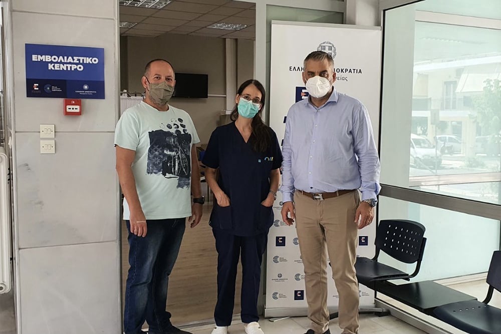 Παράλληλα, συναντήθηκε και αντάλλαξε απόψεις με το ιατρικό και νοσηλευτικό προσωπικό, ενώ ενημερώθηκε σχετικά και με την πορεία του εμβολιασμού.