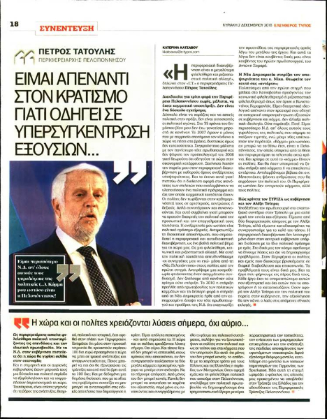 στην συνέντευξη του στον Ελέυθερο Τύπο της Κυριακής 2/12/2019: