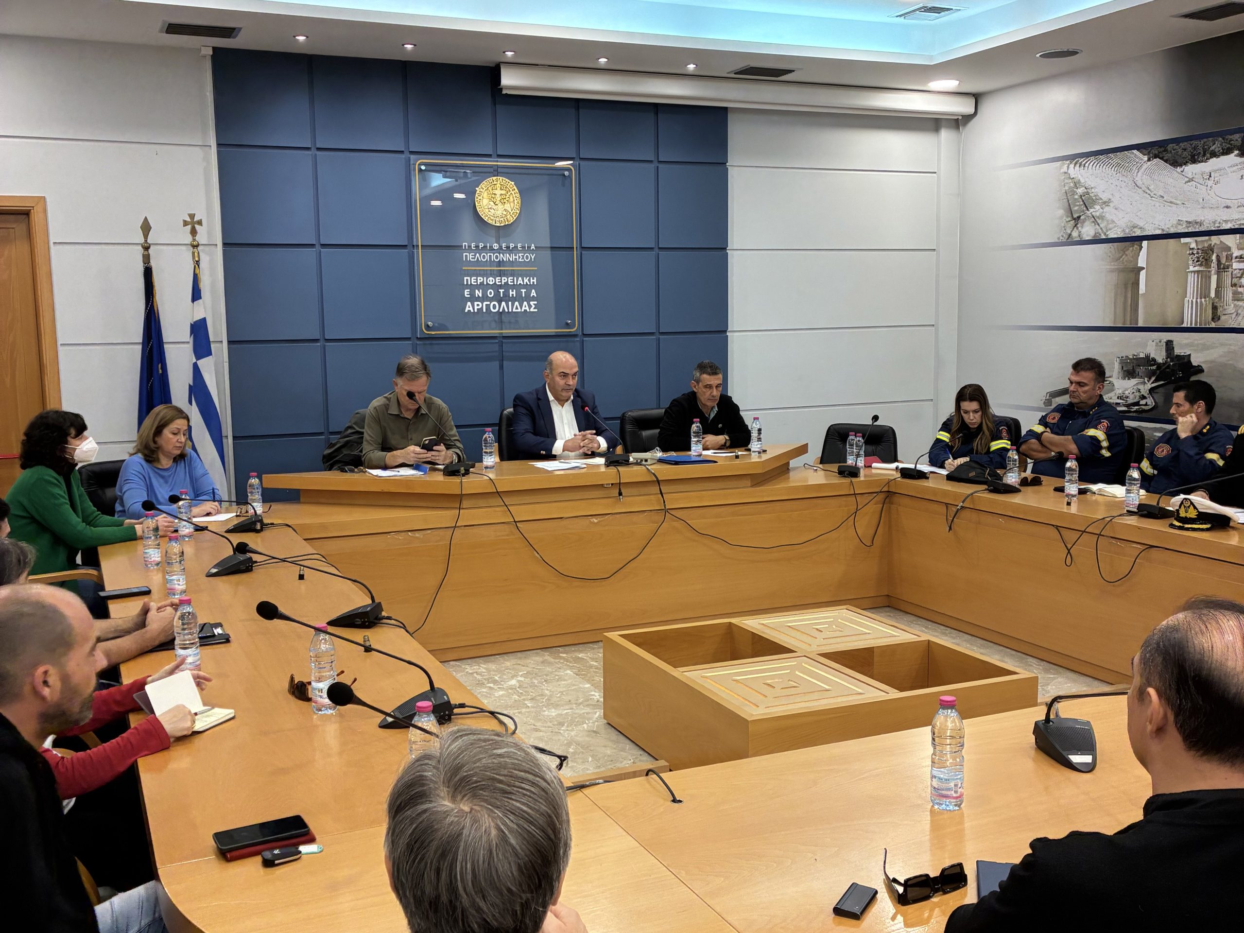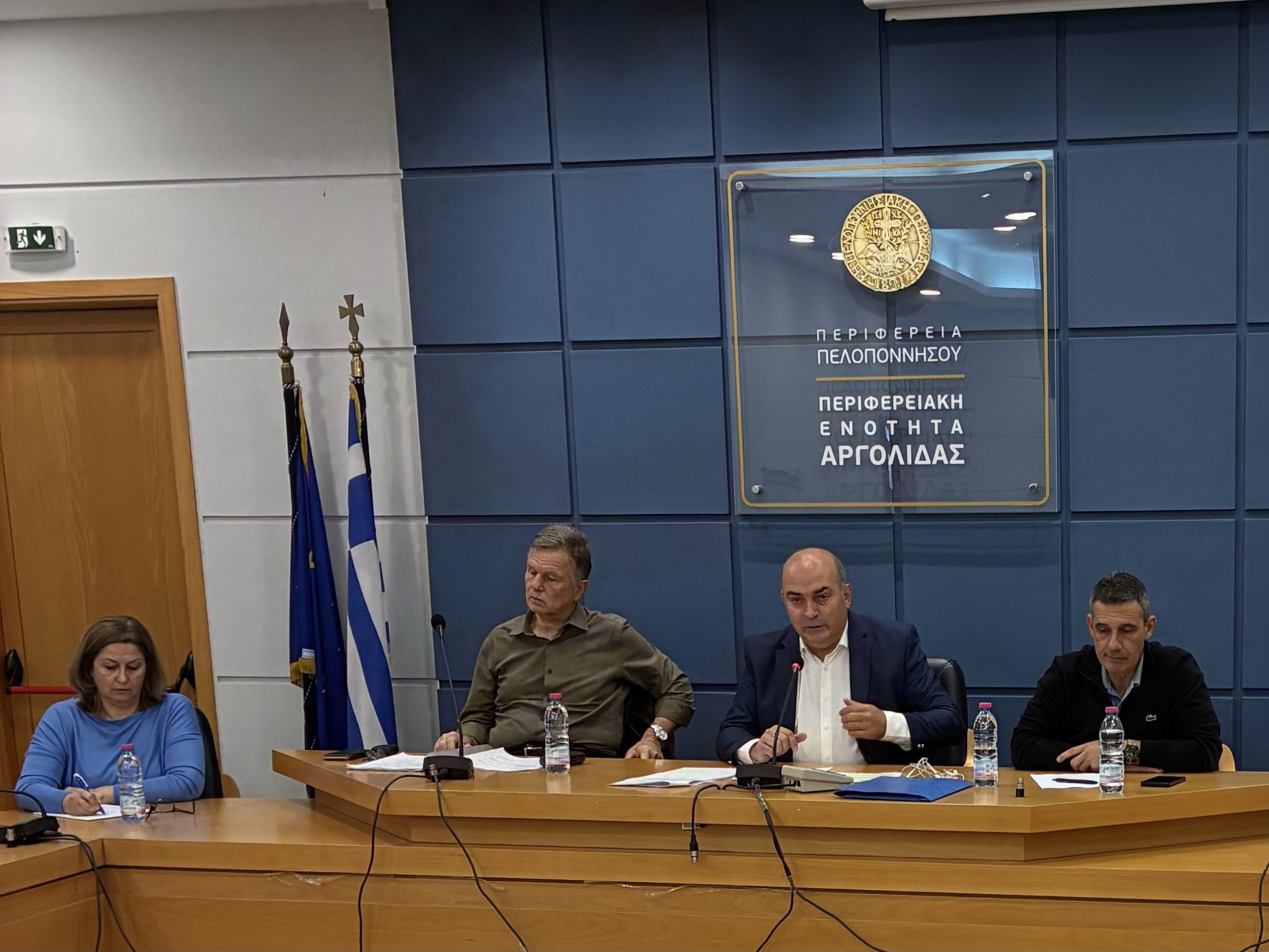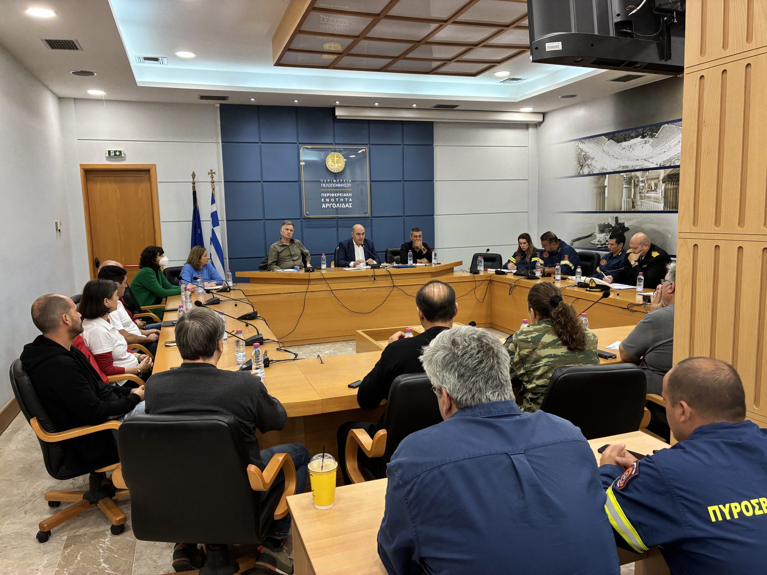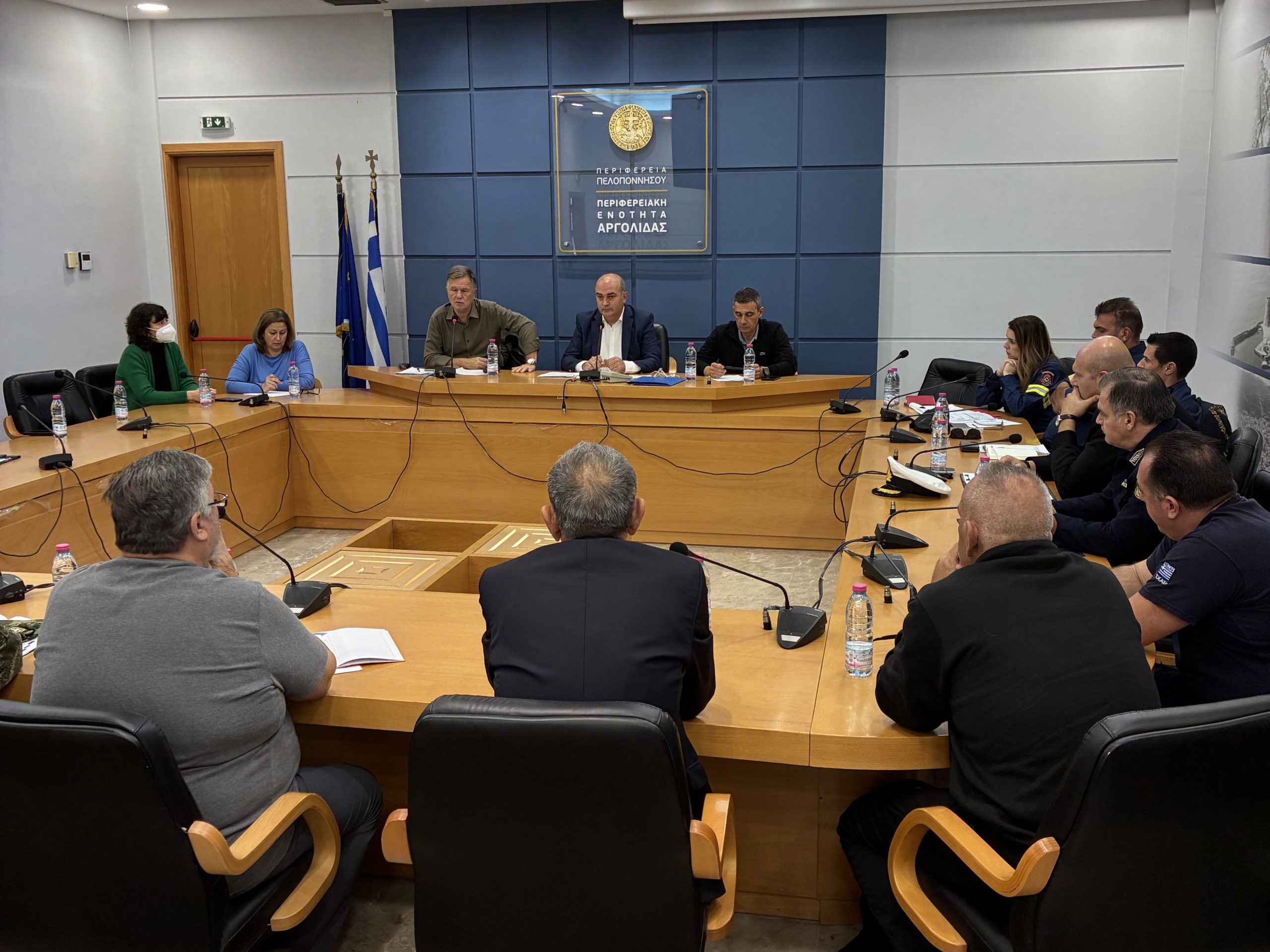 Πραγματοποιήθηκε την Τρίτη 21 Οκτωβρίου 2025, στο Διοικητήριο της Περιφερειακής Ενότητας Αργολίδας, στην Αίθουσα Πολλαπλών Χρήσεων, έκτακτη σύσκεψη του Περιφερειακού Συντονιστικού Οργάνου Πολιτικής Προστασίας. Η σύσκεψη συγκλήθηκε από τον Αντιπεριφερειάρχη Π.Ε. Αργολίδας, Βασίλειο Σιδέρη, με σκοπό τον ενδελεχή σχεδιασμό και τον συντονισμό των απαραίτητων δράσεων για την αντιμετώπιση των επικείμενων δυσμενών καιρικών φαινομένων που προβλέπονται για τις επόμενες ημέρες.
