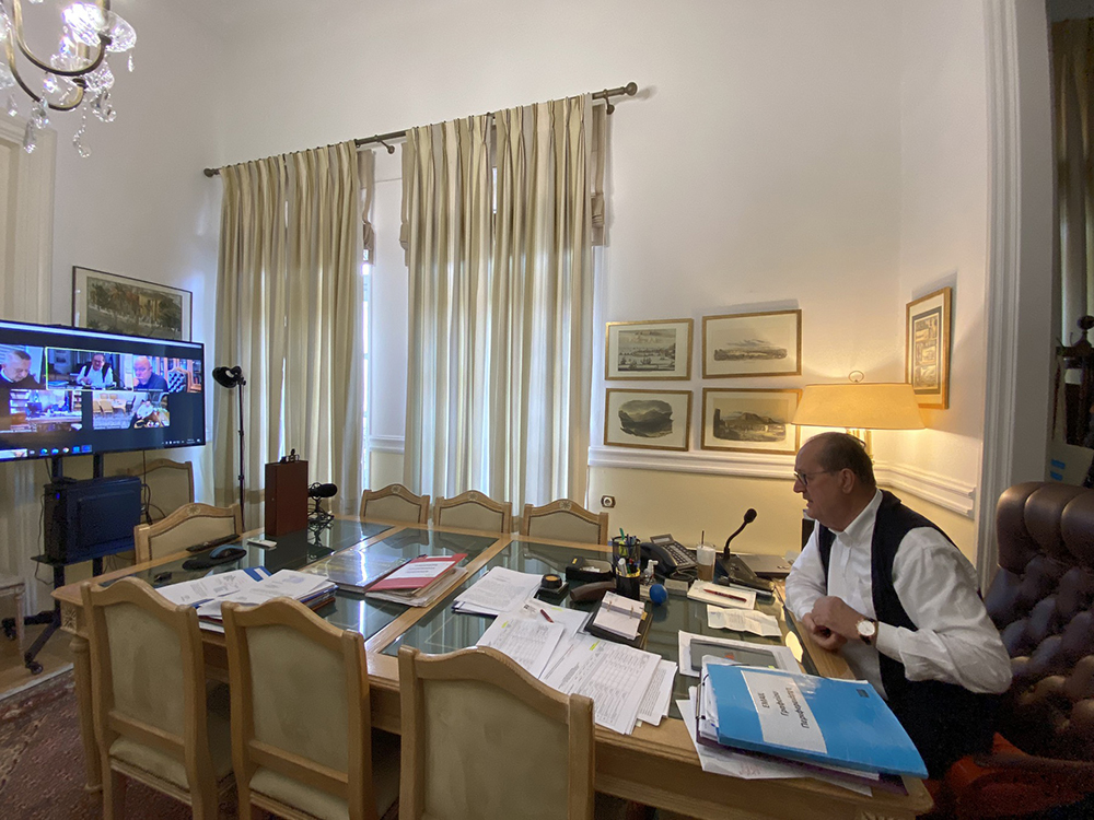 Τηλεδιάσκεψη είχε ο περιφερειάρχης Πελοποννήσου Παναγιώτης Νίκας, το πρωί σήμερα Δευτέρα 13 Μαρτίου, με τους 5 χωρικούς αντιπεριφερειάρχες και τους προϊσταμένους των Διευθύνσεων Τεχνικών Εργων των Περιφερειακών Ενοτήτων και της έδρας.