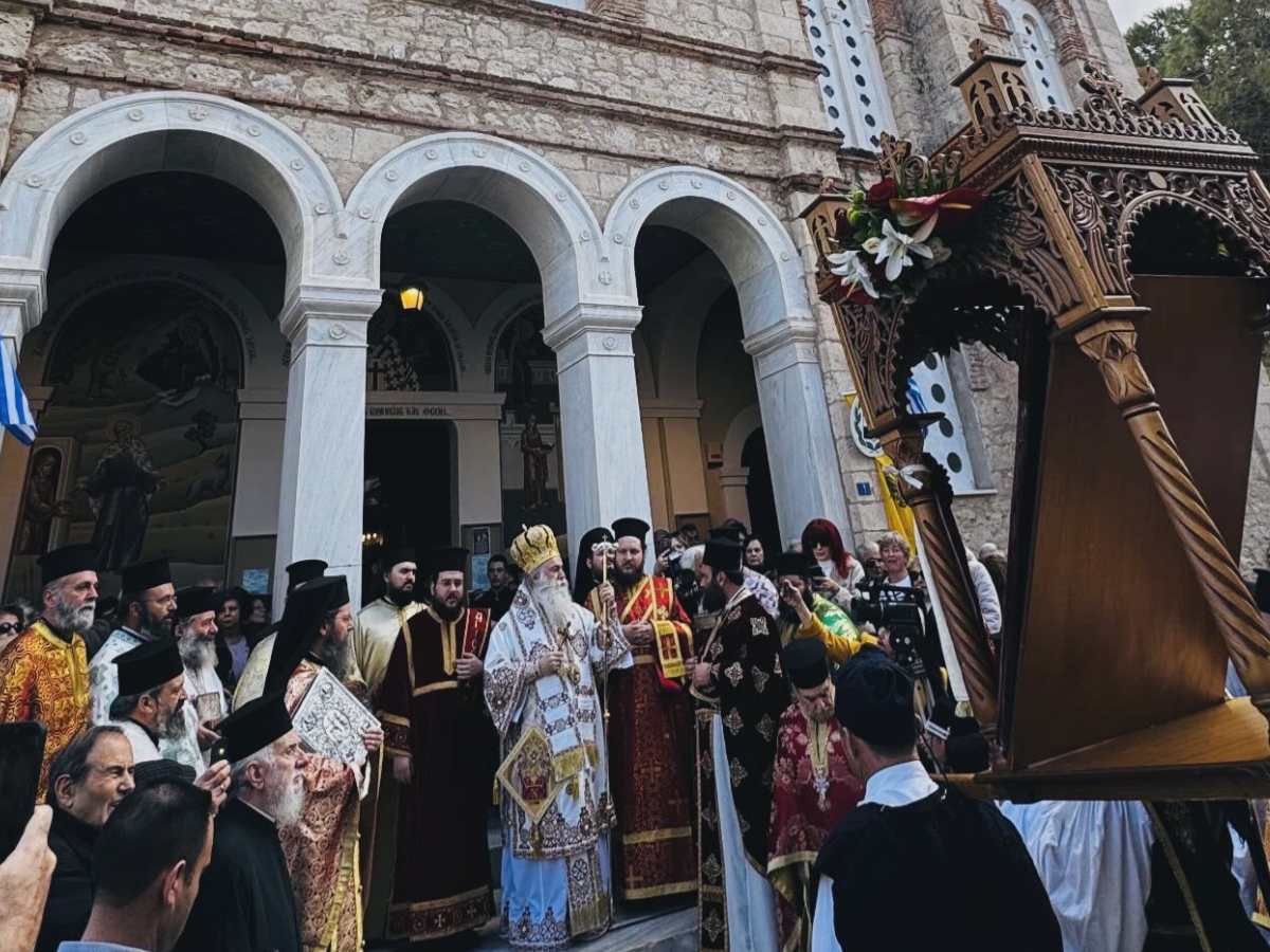 Ακολούθησε η λιτάνευση της Σεπτής και Θαυματουργής Εικόνας του Αγίου στις κεντρικές οδούς της πόλης, με τη συμμετοχή της Φιλαρμονικής Ξυλοκάστρου, της Φιλαρμονικής Δερβενίου, του Σώματος Ελληνικού Οδηγισμού, του ιερού κλήρου, των τοπικών αρχών, Βουλευτών, Αντιπεριφερειαρχών, Περιφερειακών Συμβούλων, Δημάρχου και πλήθους κόσμου. Η πομπή κατέληξε και πάλι στον Ιερό Ναό, μέσα σε κλίμα κατάνυξης.